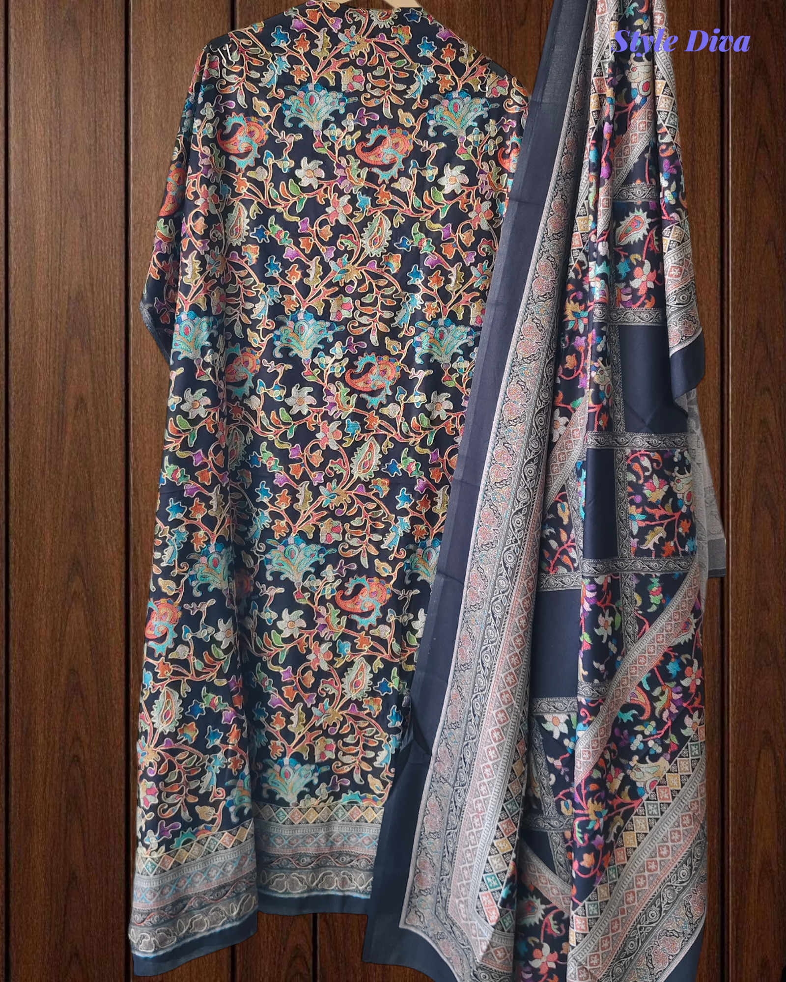 (BLACK)Winter Wear- Premium Pashmina Kurta Set with Digital Prints & All-Over Embroidery