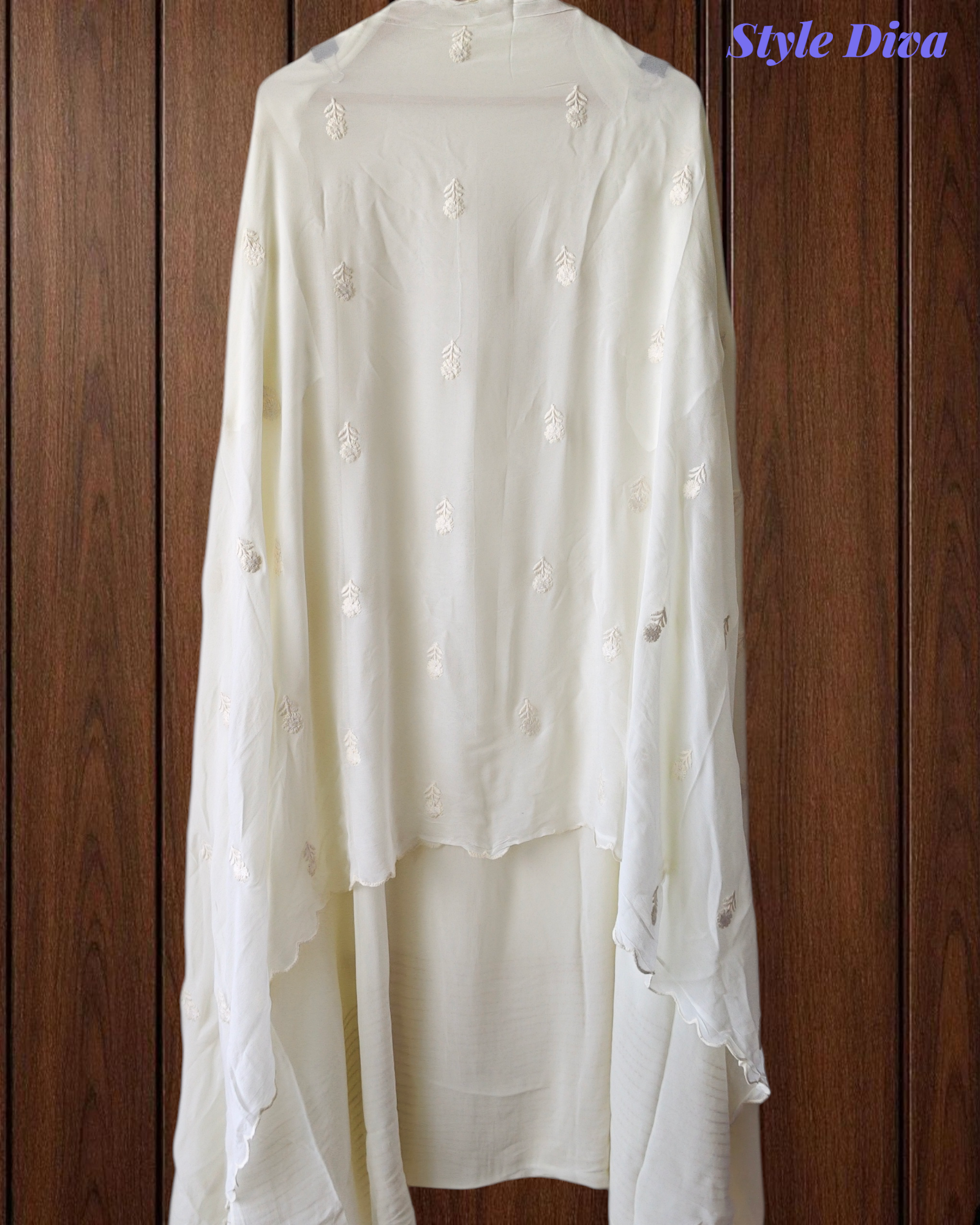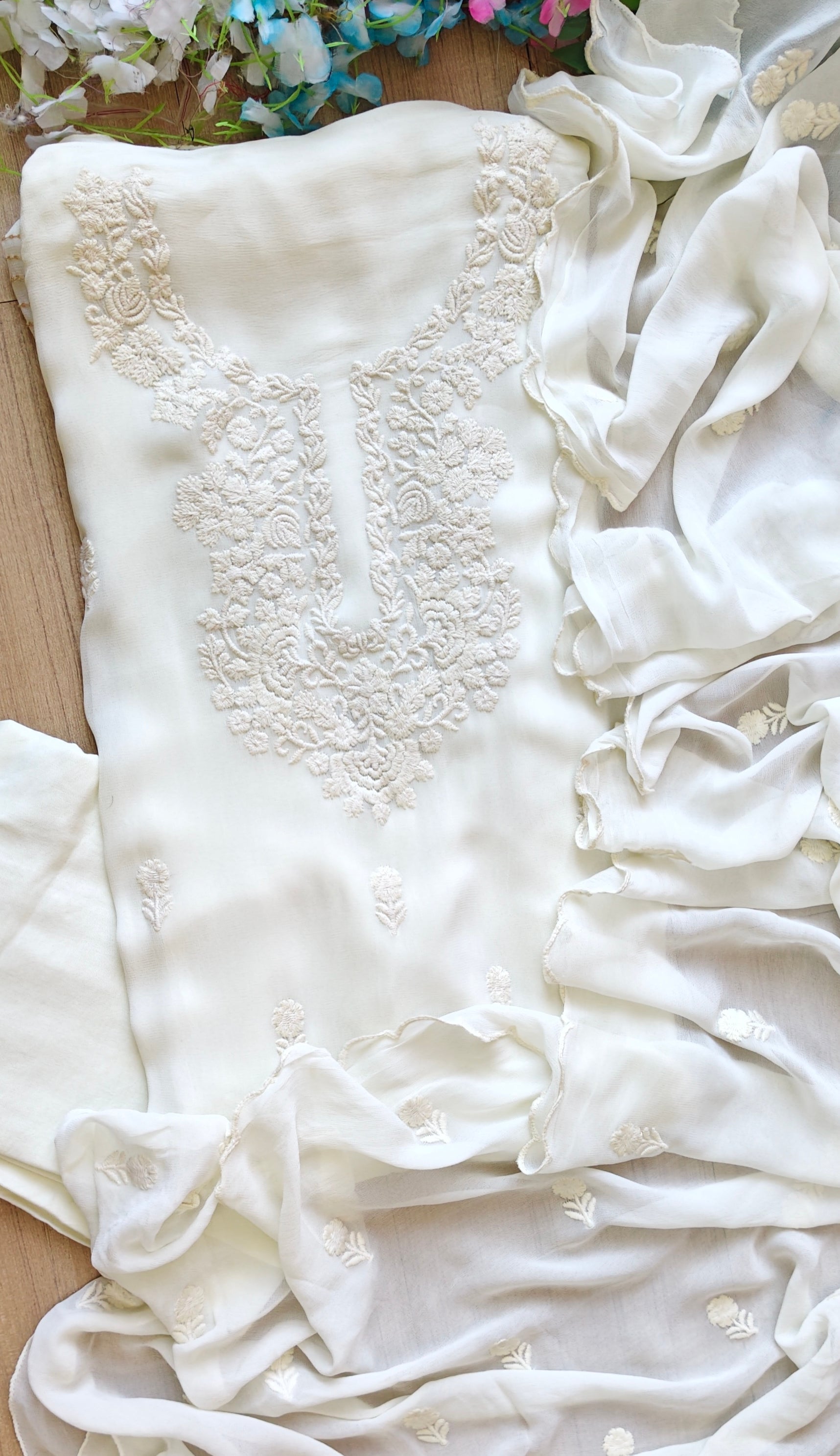 Dupatta: Georgette Dupatta with delicate scalloped edges and beautiful Lucknowi embroidery, adding charm and sophistication to the overall outfit.