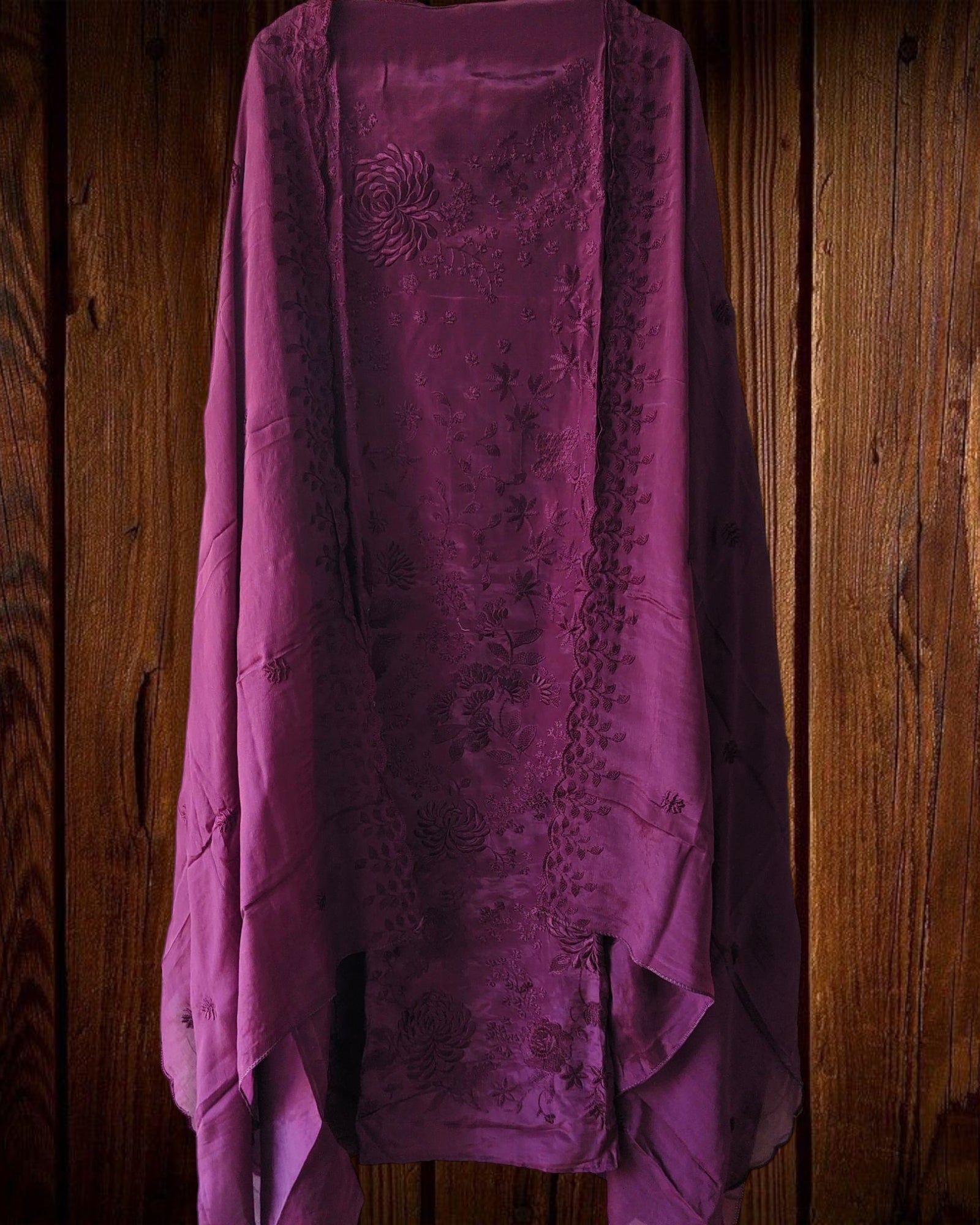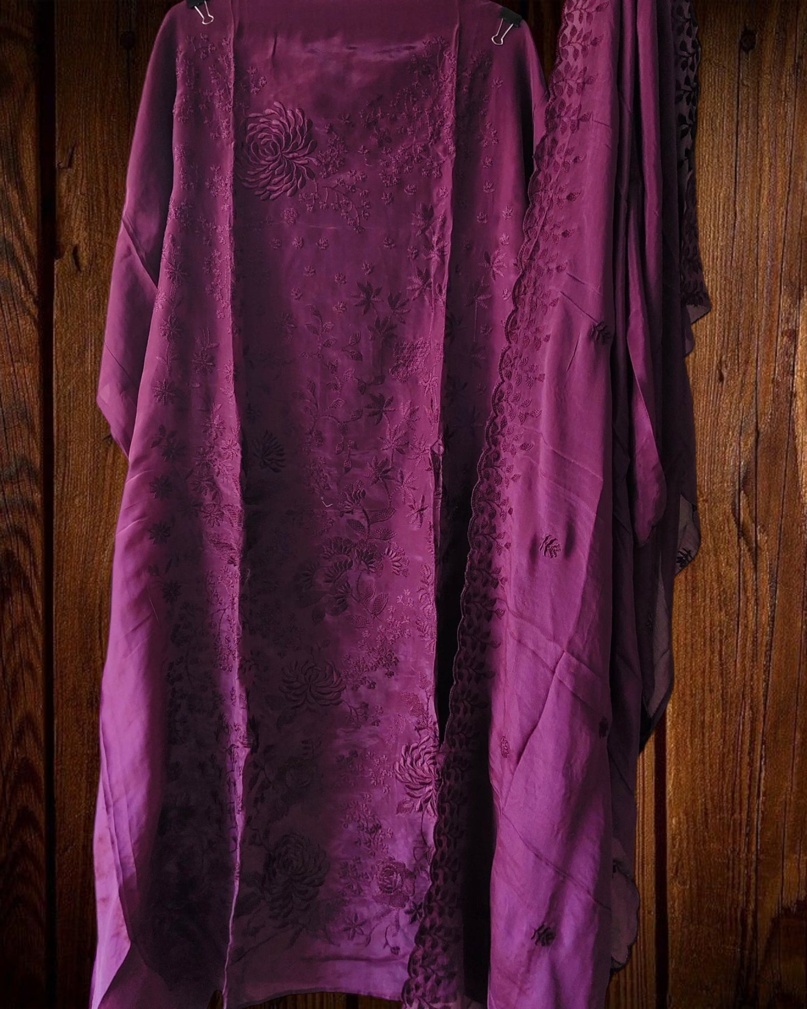 This Crepe Parsi Embroidered Un-Stitched Suit Set is a beautiful blend of sophistication and detailed craftsmanship. The fine Parsi embroidery on the kurta and dupatta adds a graceful touch, making it perfect for festive, semi-formal, and elegant day events. With its soft crepe texture and versatile un-stitched design, it offers both comfort and style, tailored just the way you like.