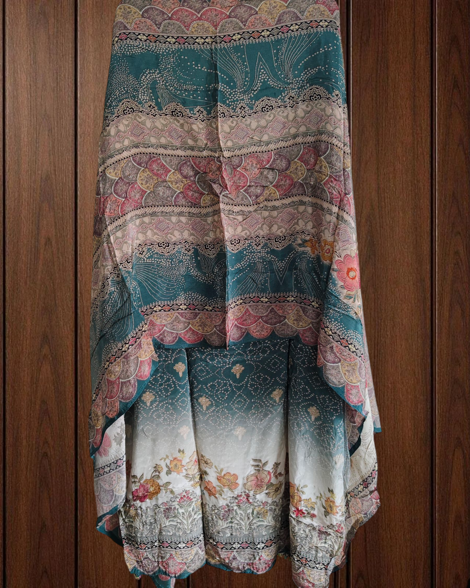Dupatta: Coordinated Crepe Digital Printed Dupatta enhanced with tassels for a graceful and trendy touch.