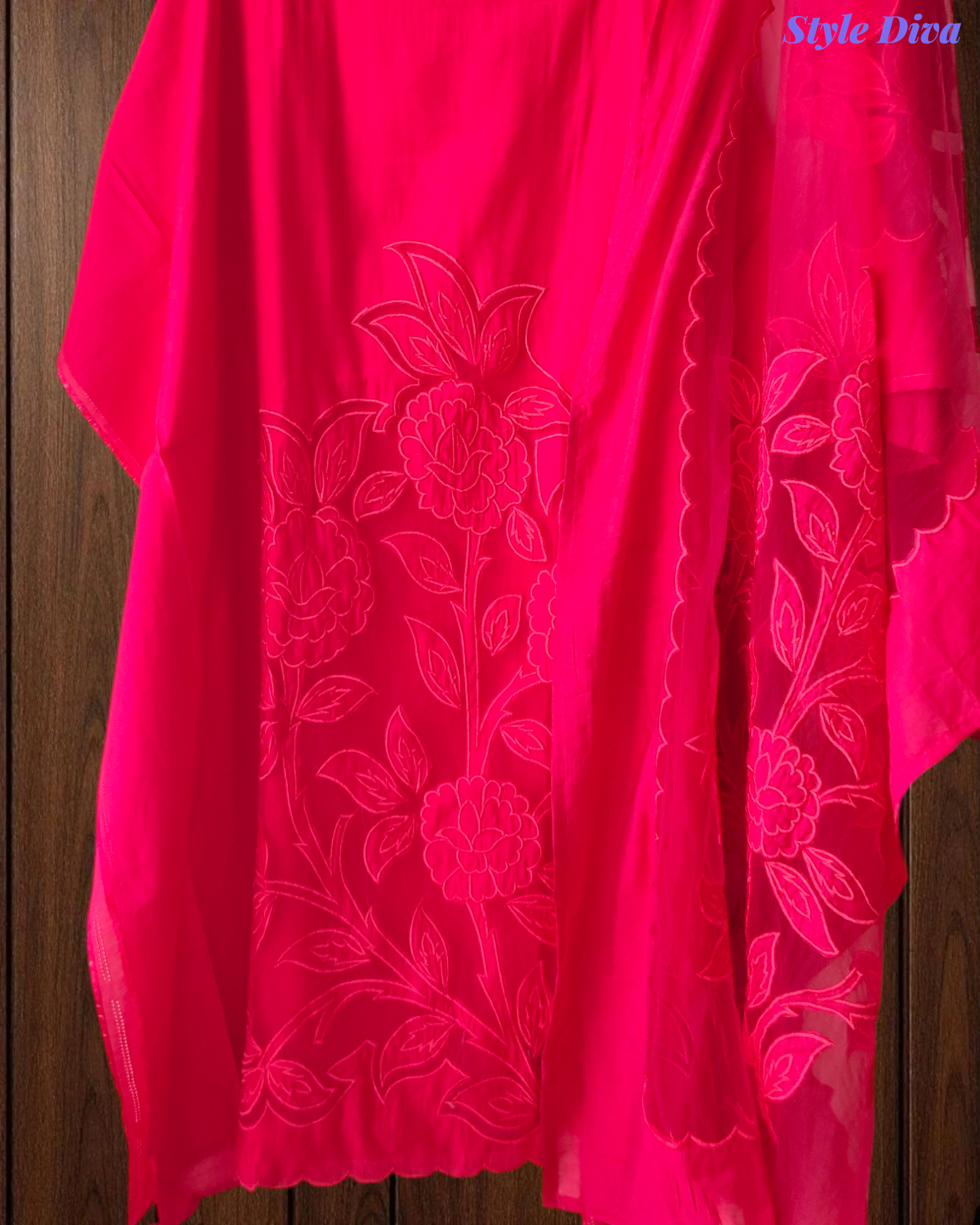 Dupatta: Matching modal laser cutting dupatta adorned with applique detailing, adding grace and coordinated charm.