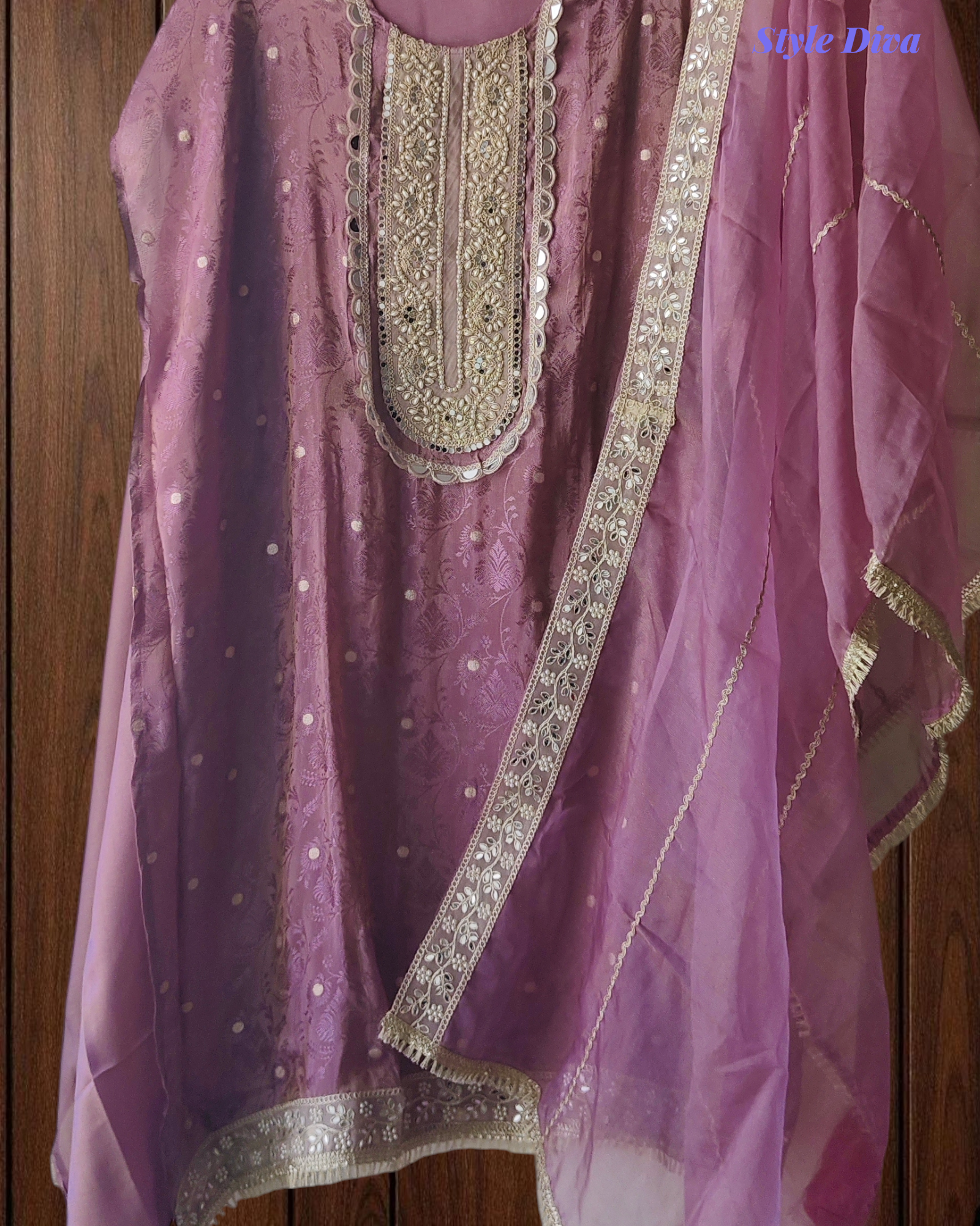 | Kurta | Self DesignShimmer Tissue Kurta with Pearl and Mirror Work |
