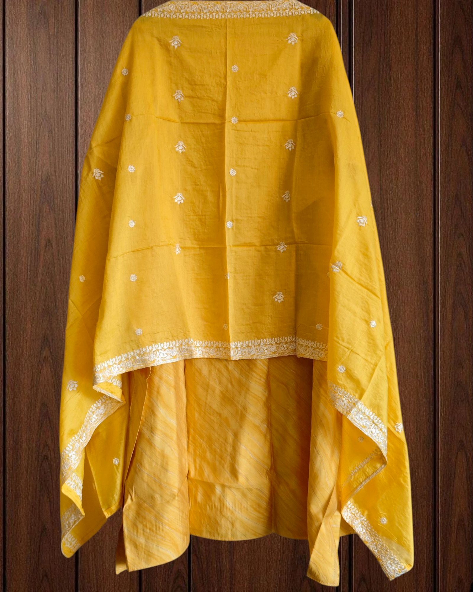 Work: Intricate embroidery on Kurta, Dupatta, and Bottom for a coordinated festive look
