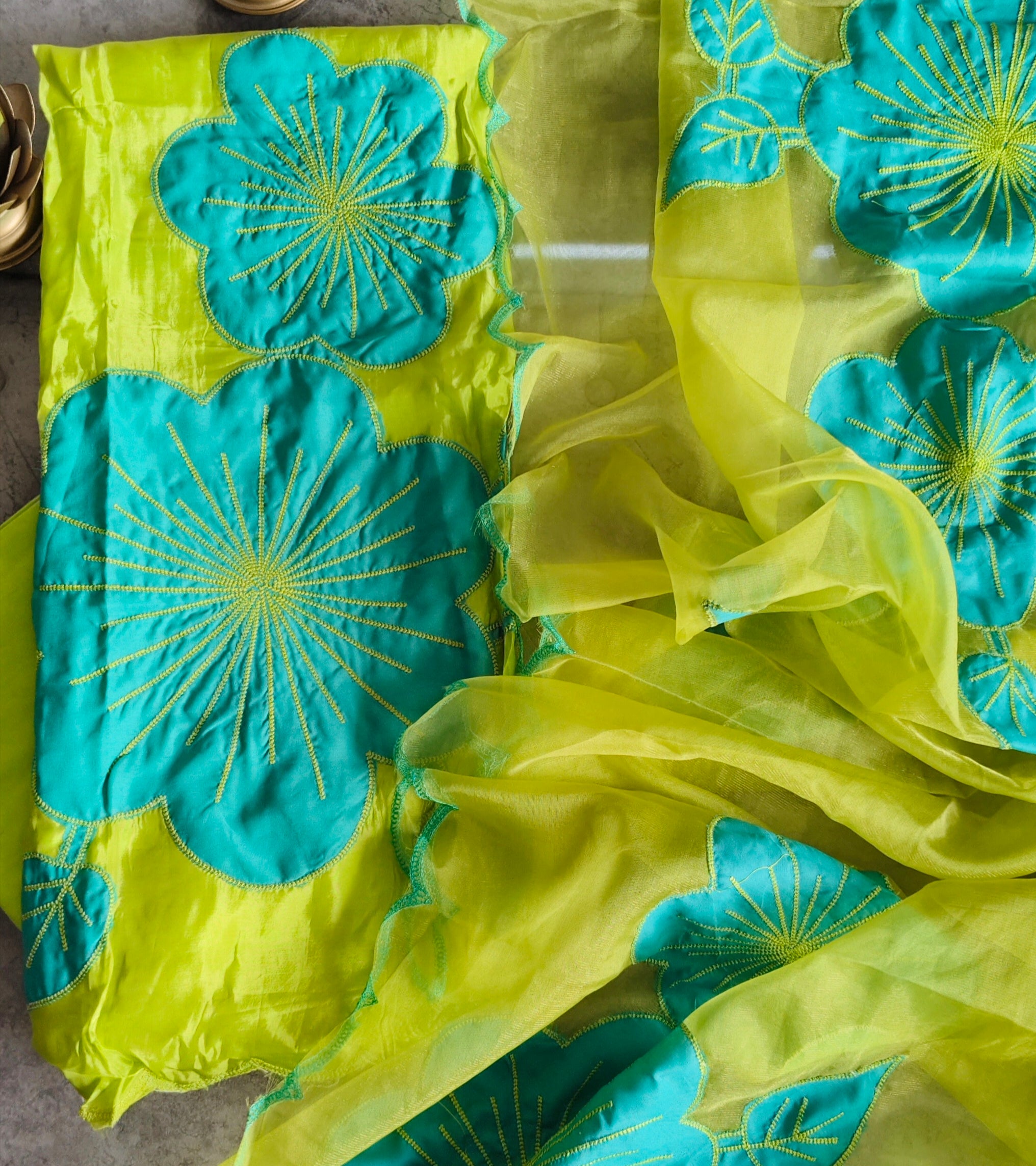 Dupatta: Organza Brush-Paint Dupatta enhanced with Crochet Lacing for a graceful touch