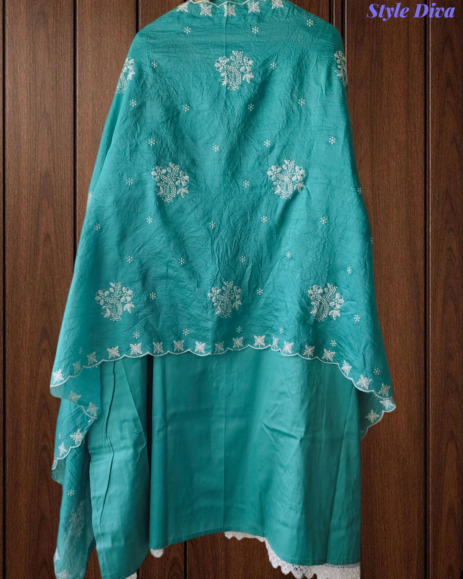 Dupatta: A lightweight cotton dupatta, beautifully adorned with Chikankari detailing, adding an ethereal charm to your ensemble.