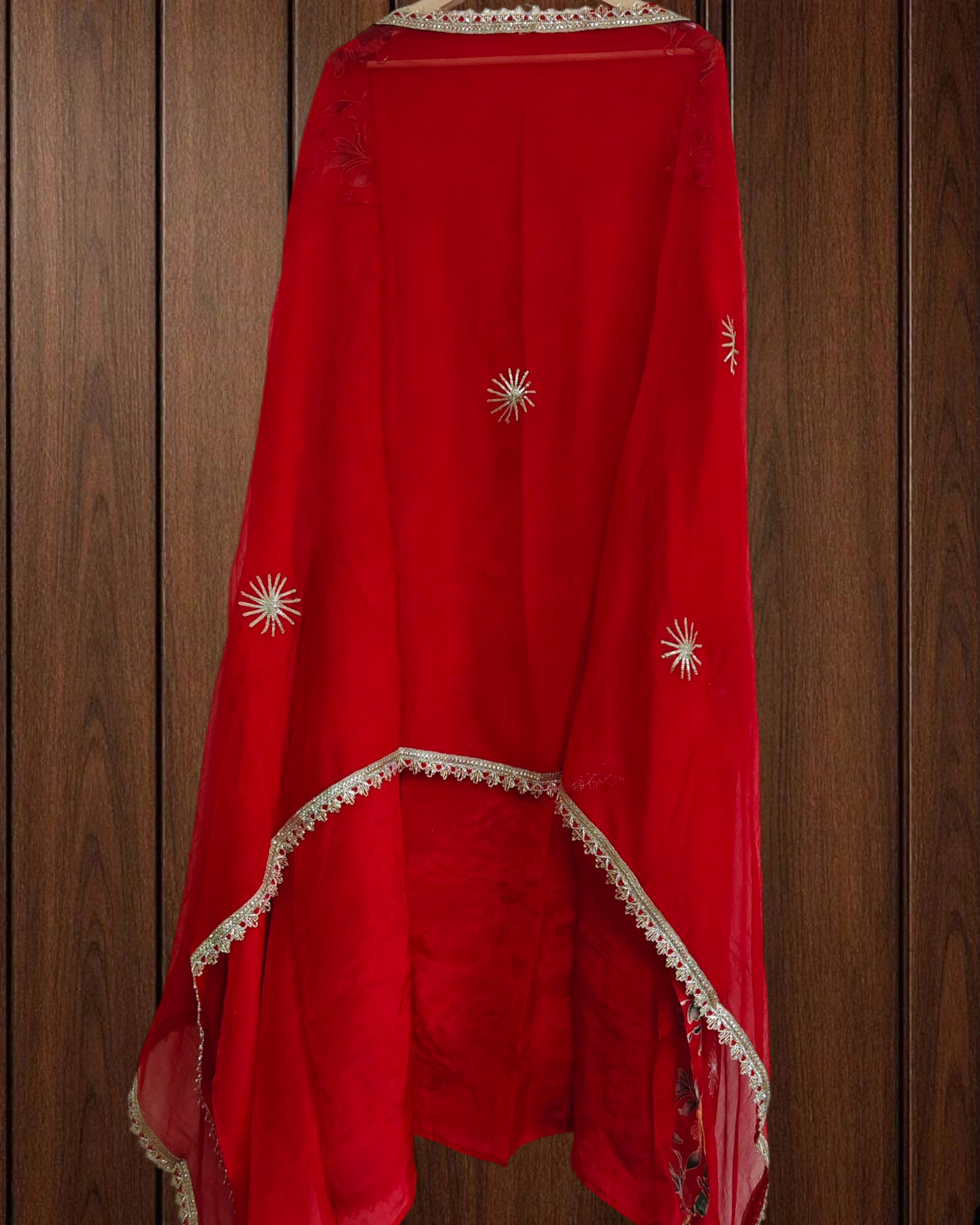 • Dupatta: Chiffon Dupatta enhanced with Gotta Work and Contrast Border