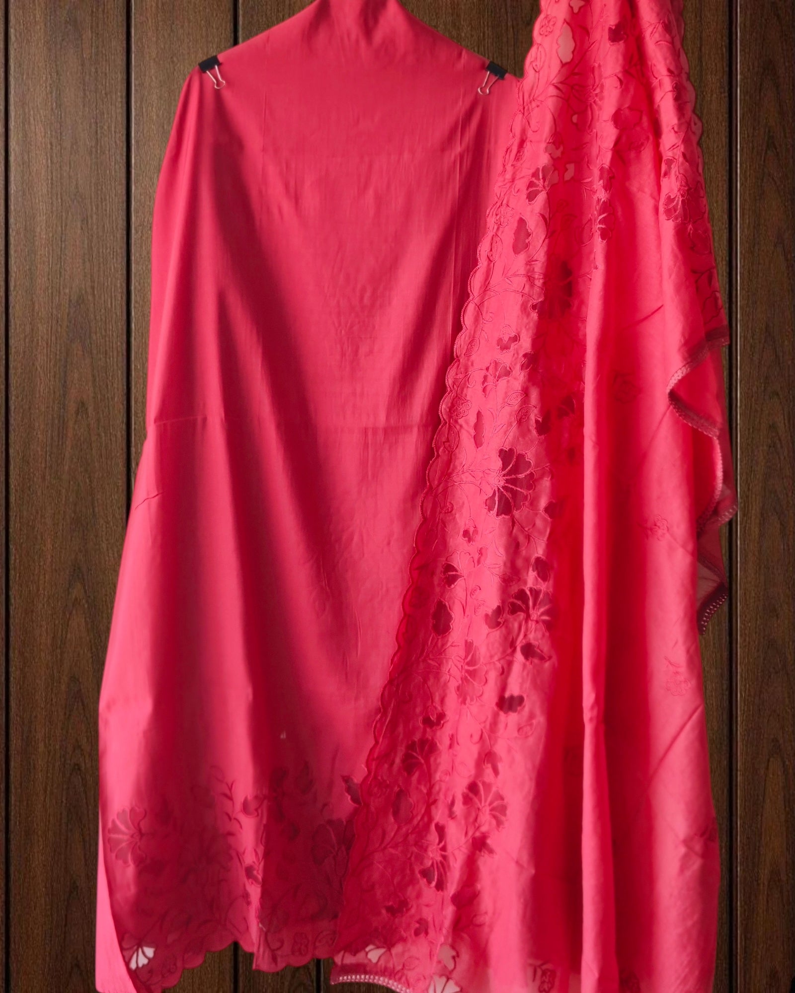 Graceful cut work Suit Set with Organza Embroidery Charm
