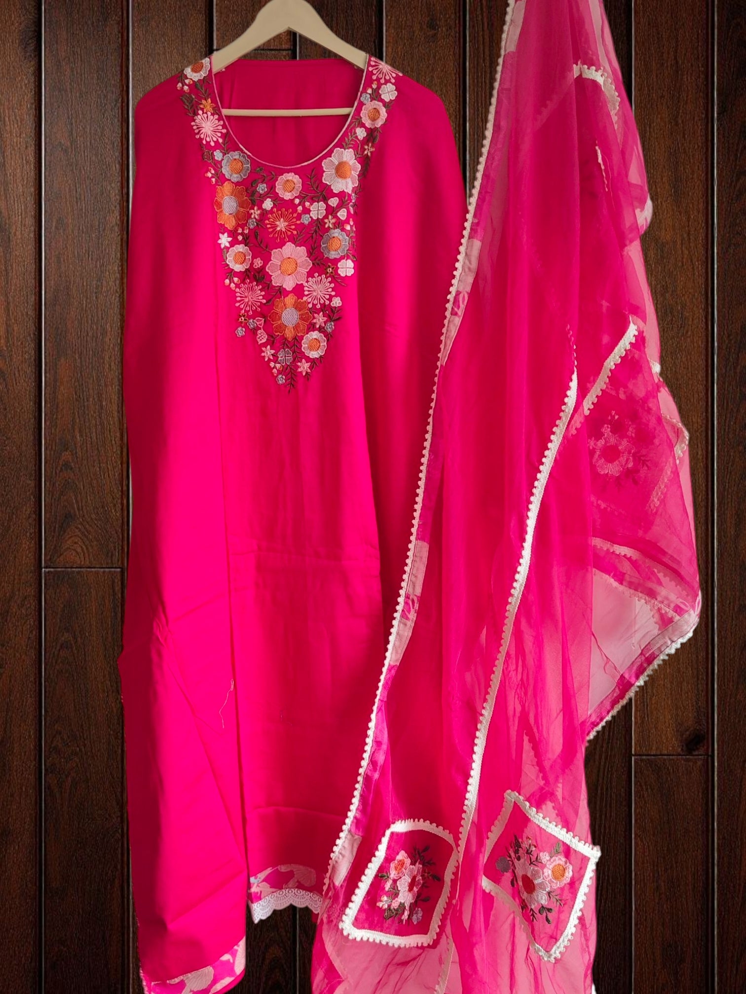 Dupatta: Organza Embroidered Dupatta adorned with Crochet Border