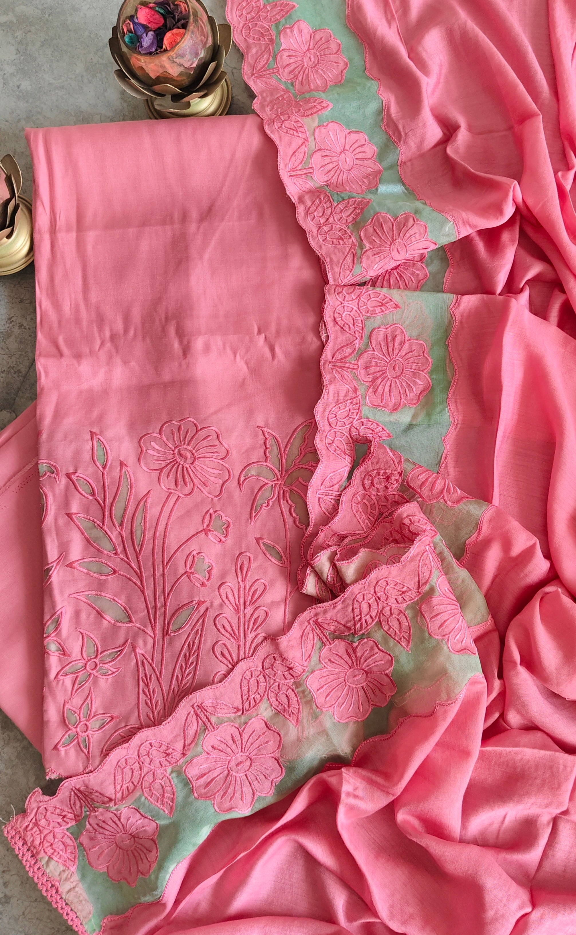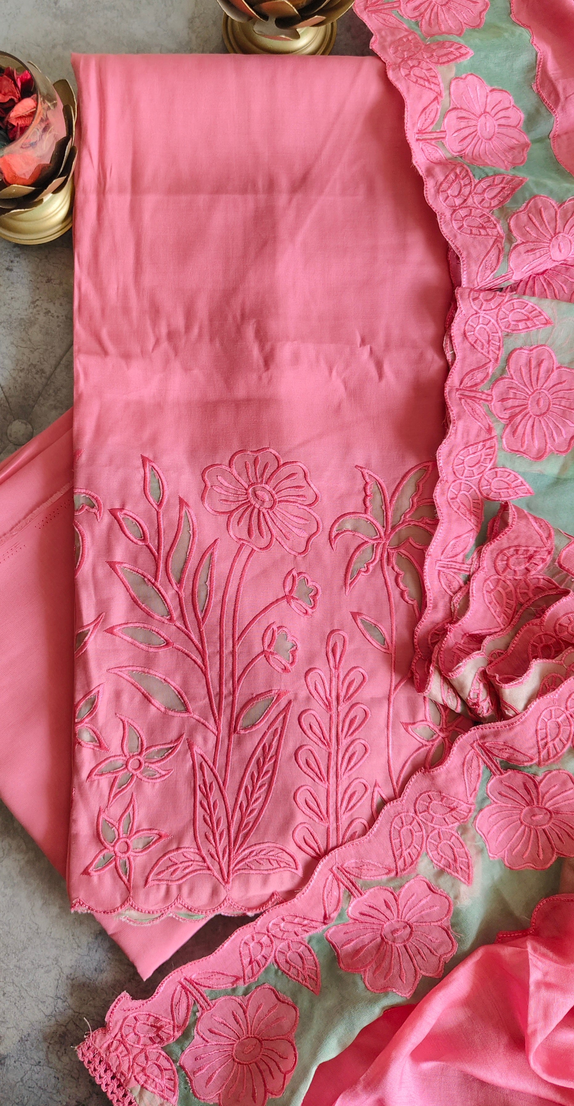 Elegant Modal Cutwork Suit Set with Organza Embroidered Grace