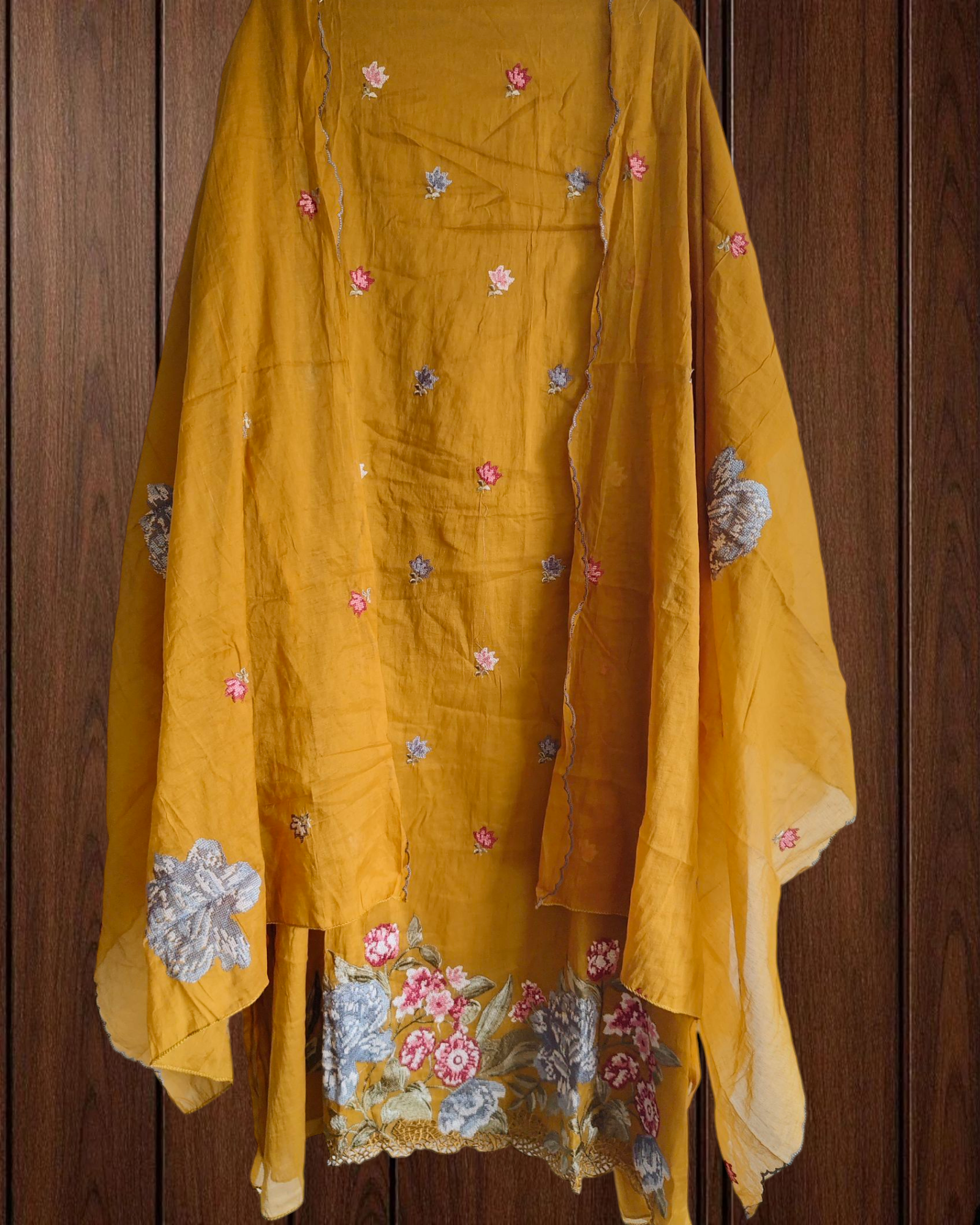 • Kurta: Soft Mul Chanderi with Cross Stitch Embroidery & Motifs