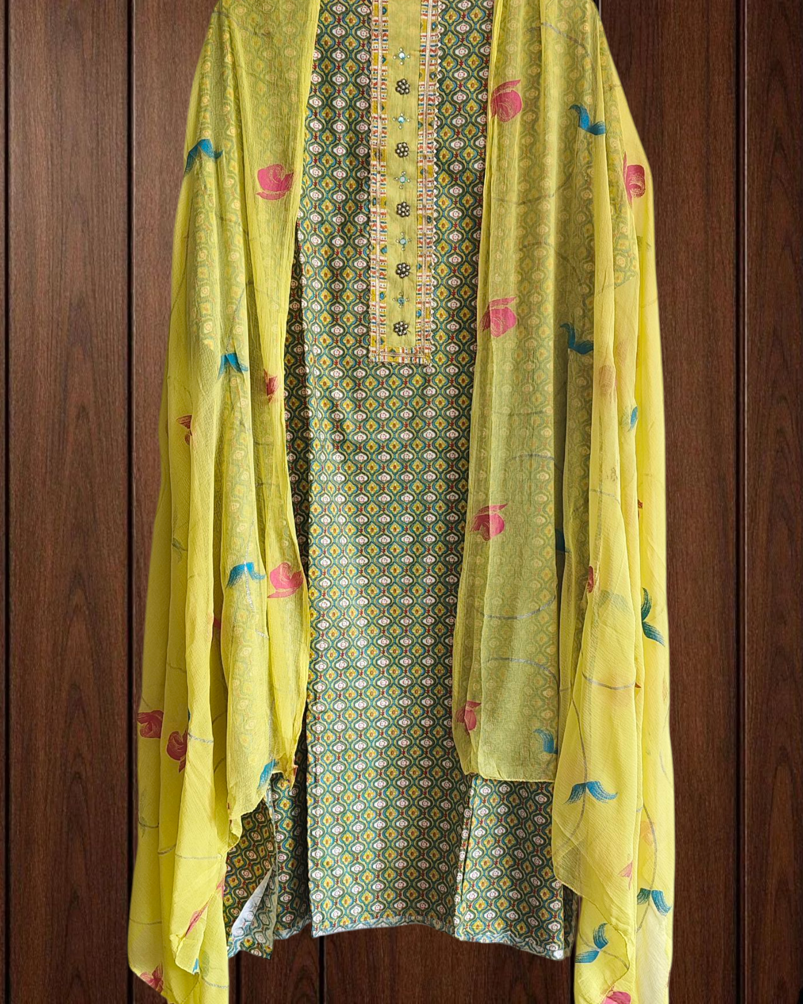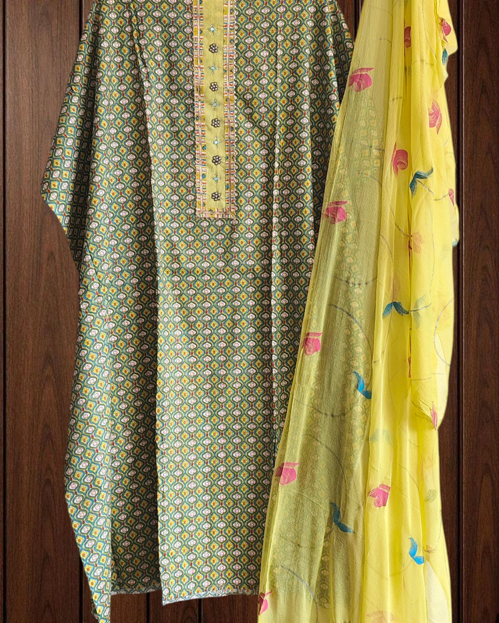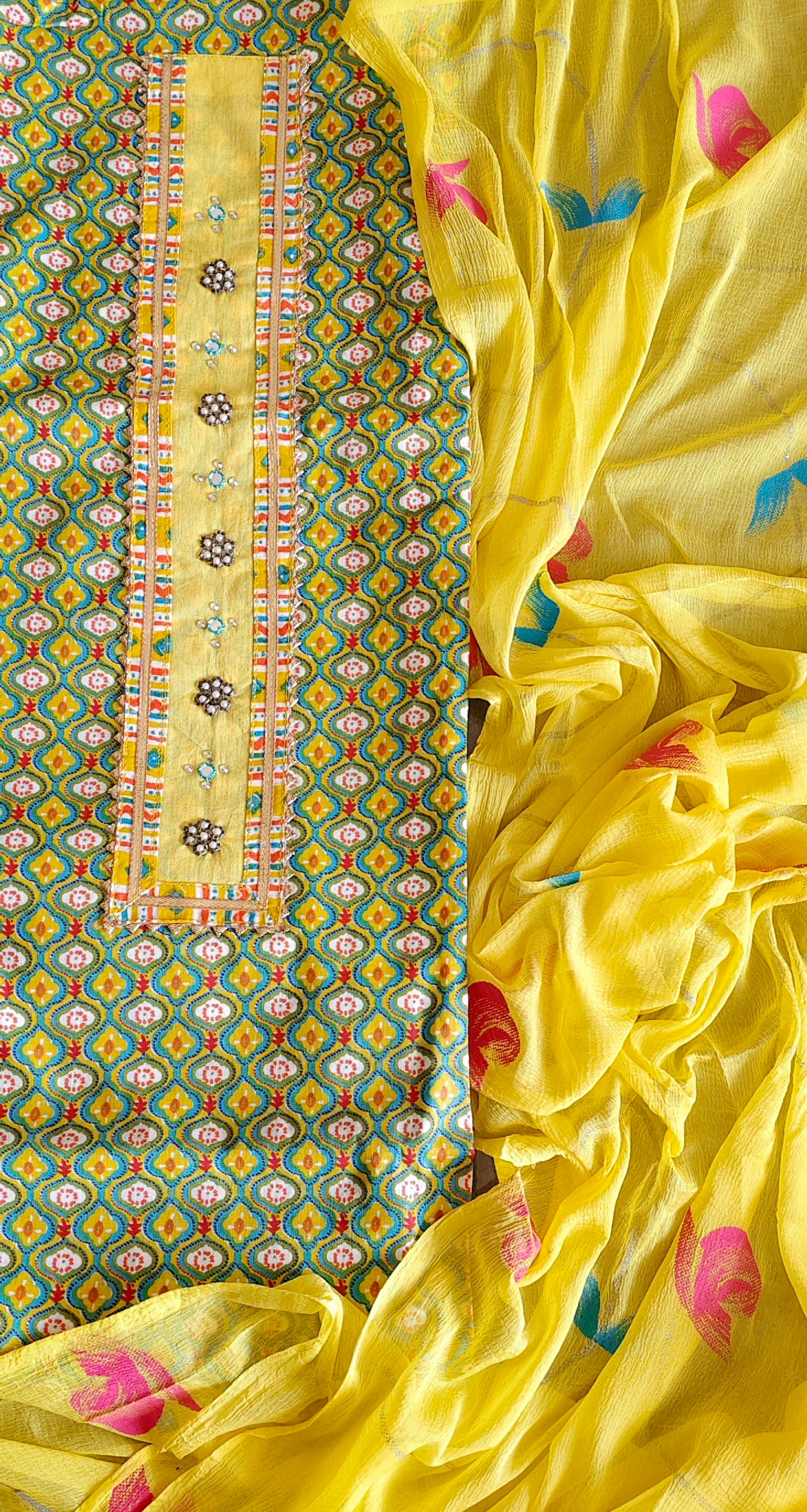 ✨ Crafted with breathable cotton, this suit combines the freshness of digital prints with artistic brush-paint detailing. The neck embroidery adds a subtle charm, while the chiffon dupatta brings a breezy elegance — making it a chic yet comfortable choice for everyday wear.