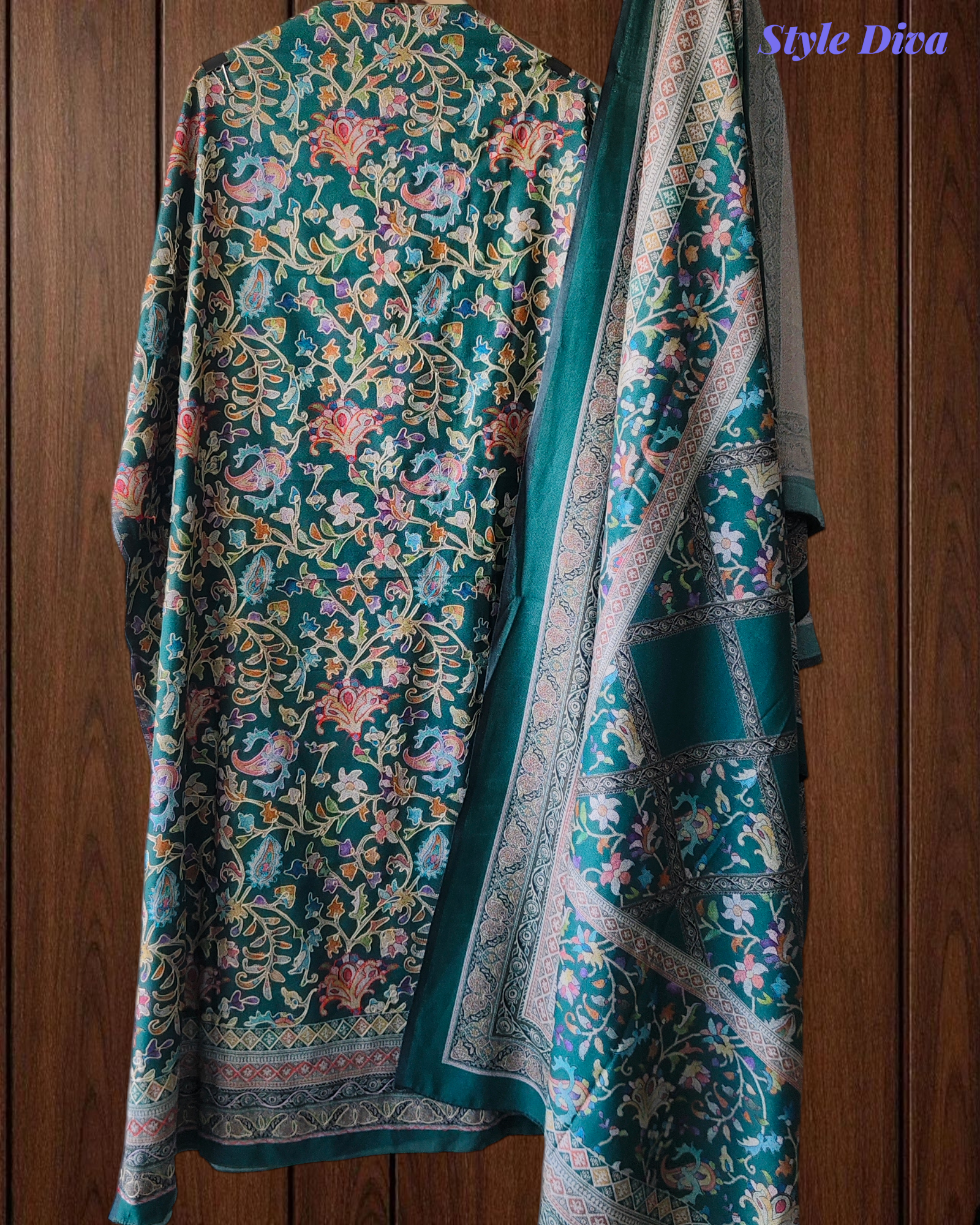 (GREEN)Winter Wear- Premium Pashmina Kurta Set with Digital Prints & All-Over Embroidery