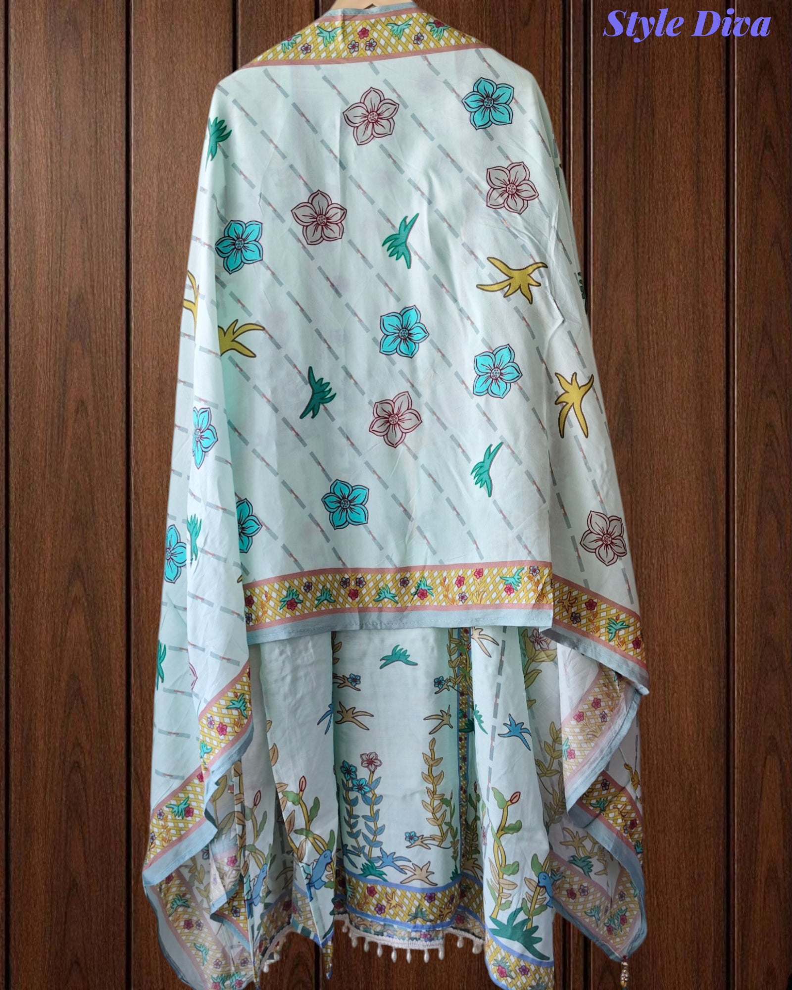 LIGHT BLUE - Muslin Digital Print Semi-Stitched Suit with Pearl and Zari Work Patch Dupatta