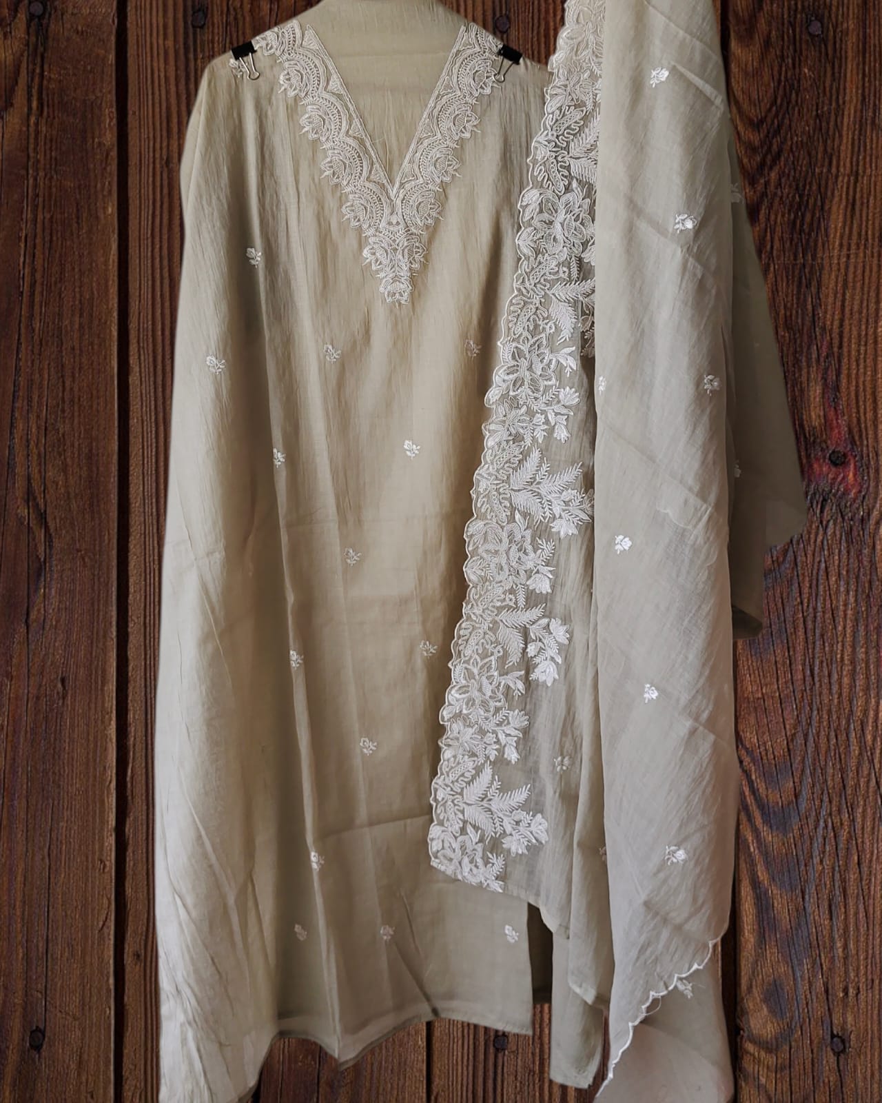 Mul cotton with quilling work n embroidery on all over kurta rayon bottom n quilling work mul cotton dupatta