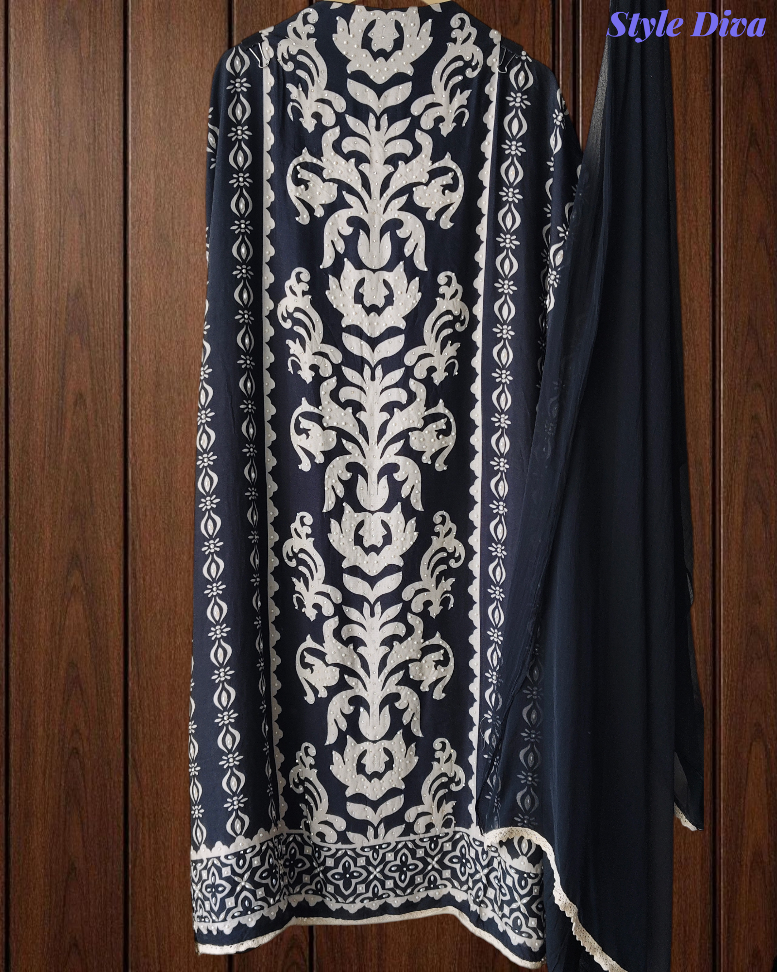 • Dupatta: Soft chiffon dupatta finished with delicate crochet lacing.