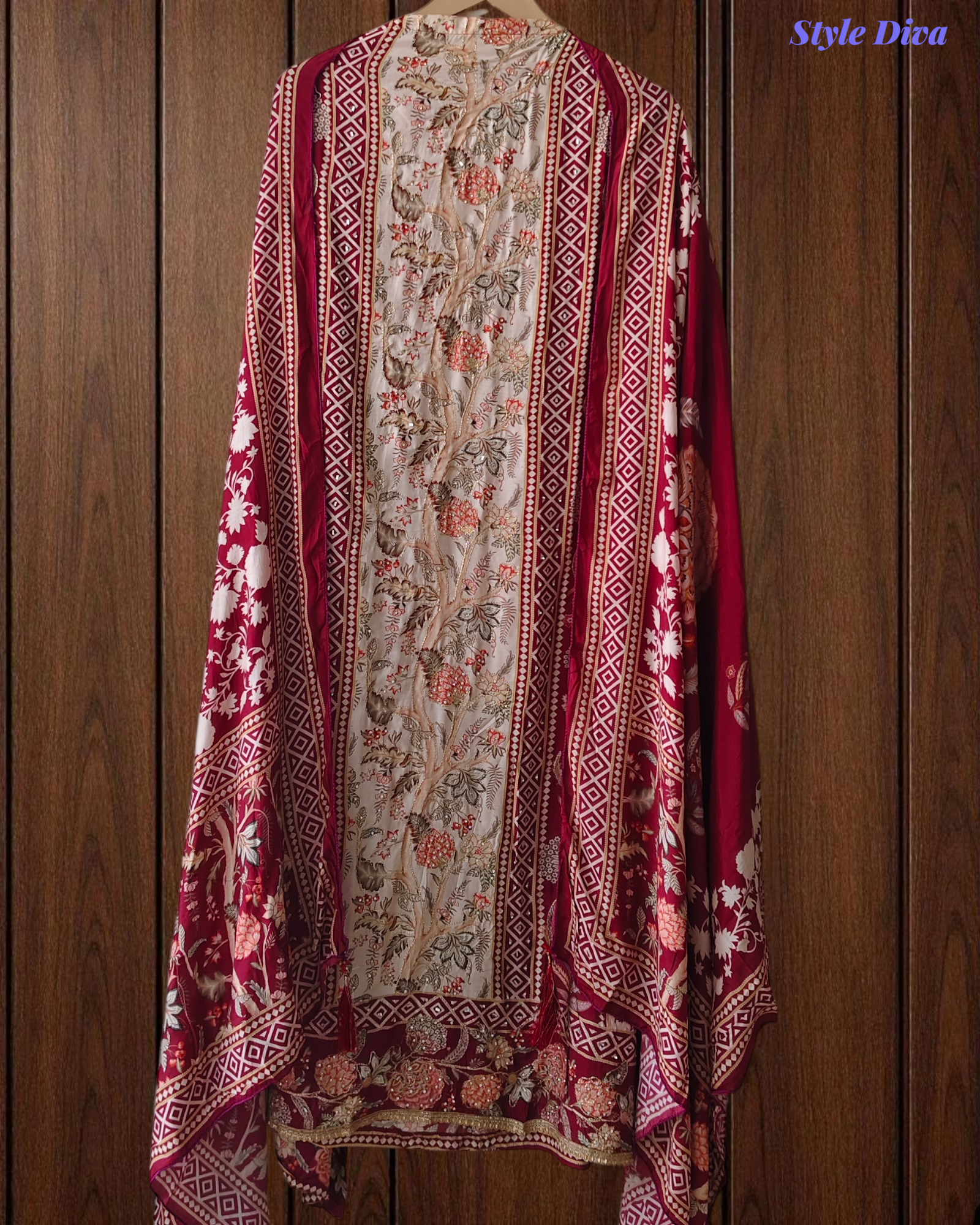 Kurta Muslin Digital Printed Kurta WIth Overall Zari Embroidery and Sarowski Work