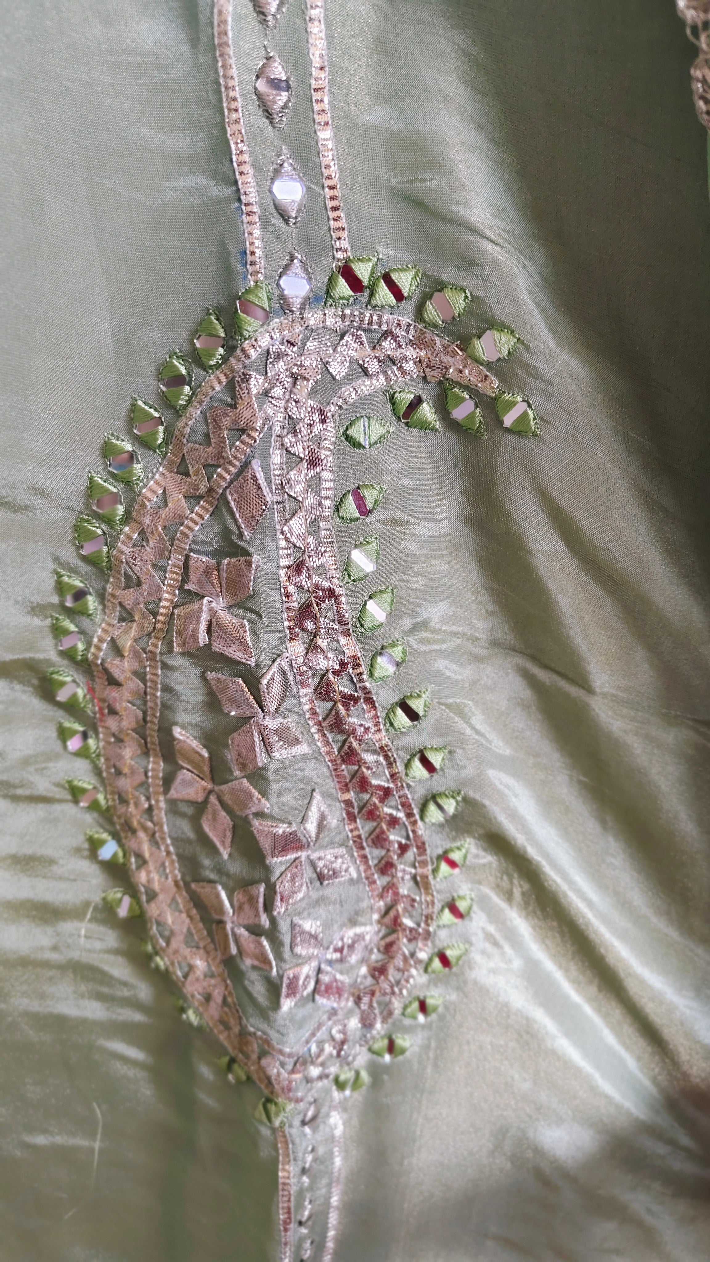 Kurta: Elegant Shimmer Tissue Kurta adorned with traditional Gotta Work