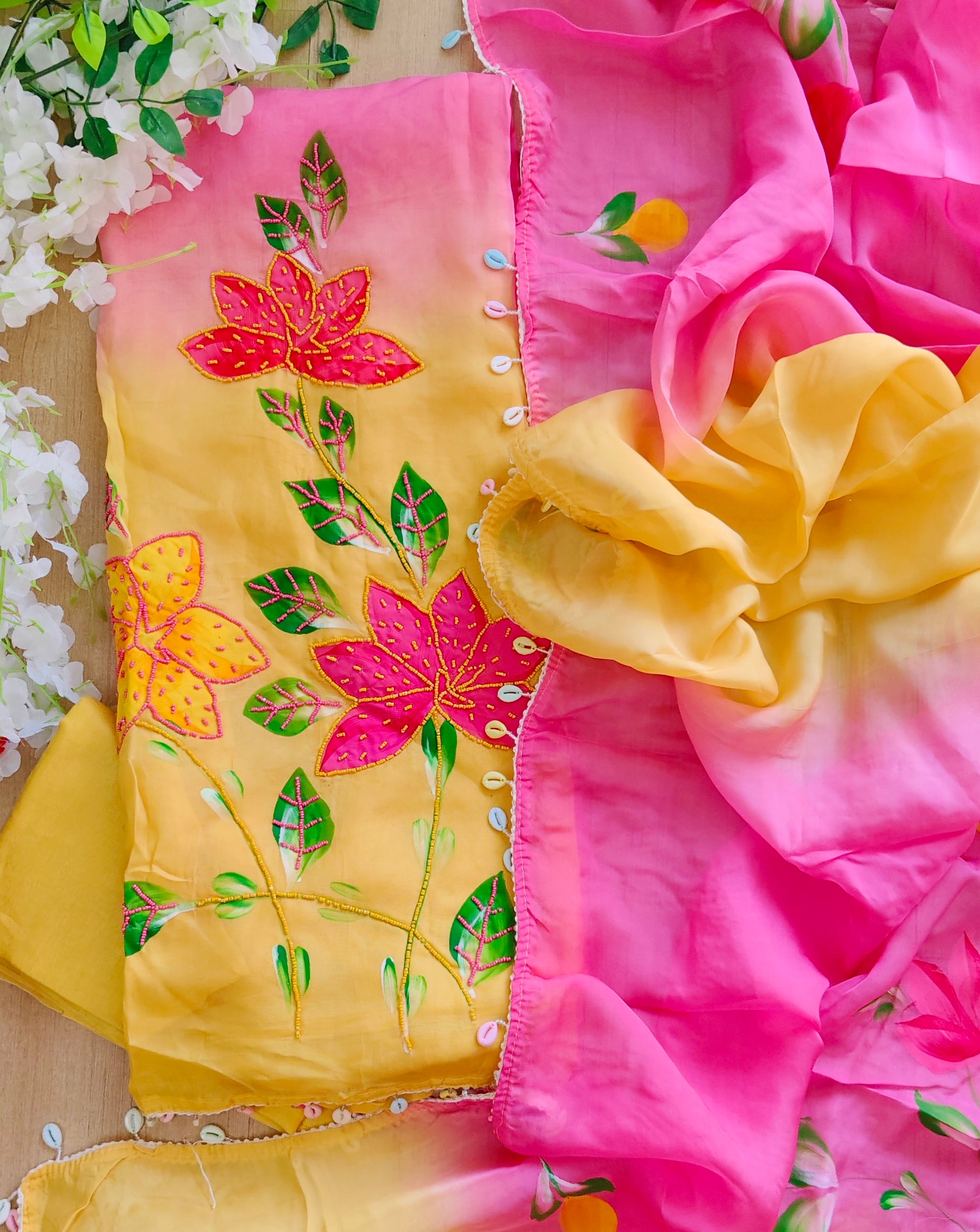 Organza Brush Paint Suit with Pearl & Sippi Latkan Detailing
