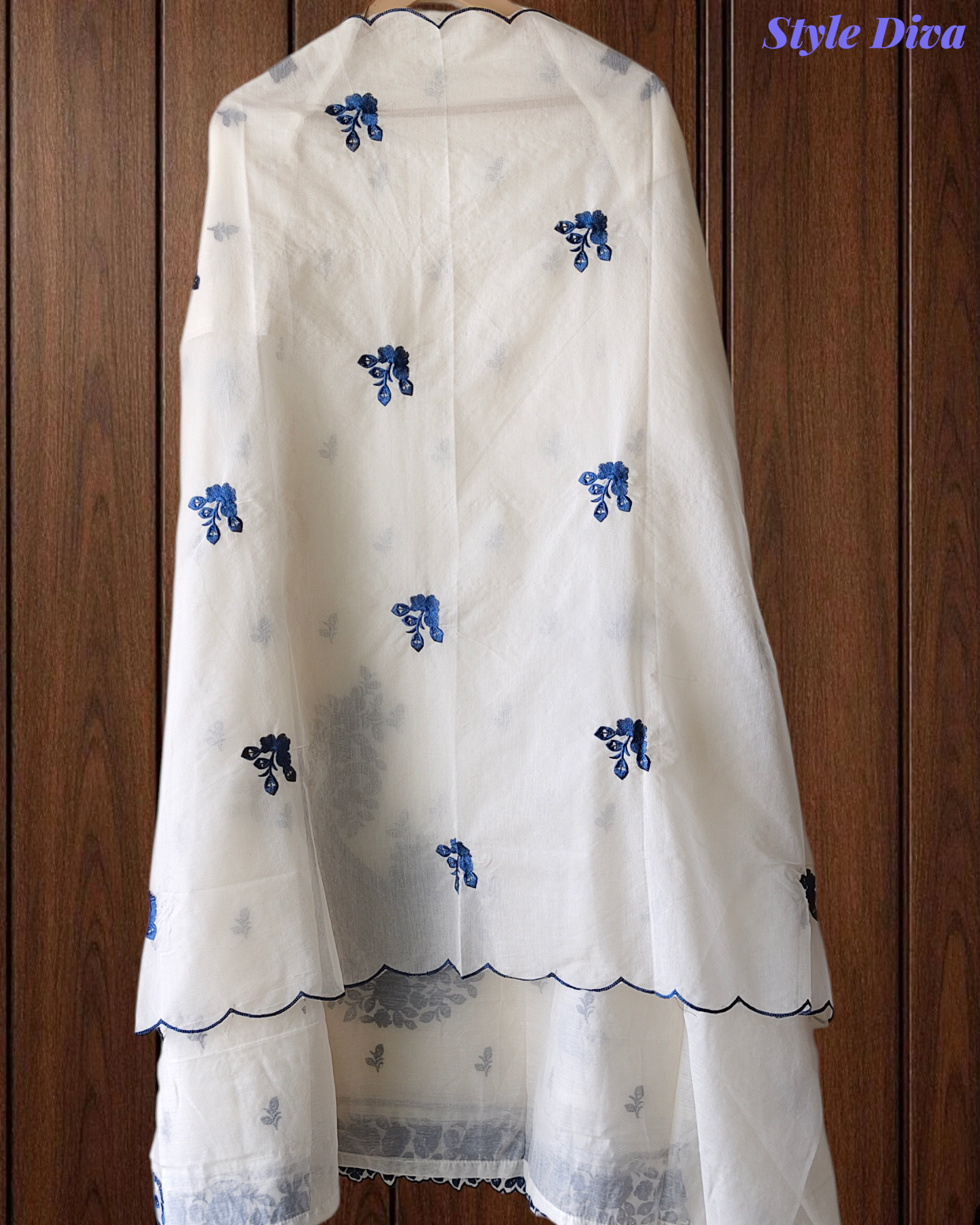 Dupatta: Soft mul cotton dupatta enhanced with subtle embroidery for a light and airy drape