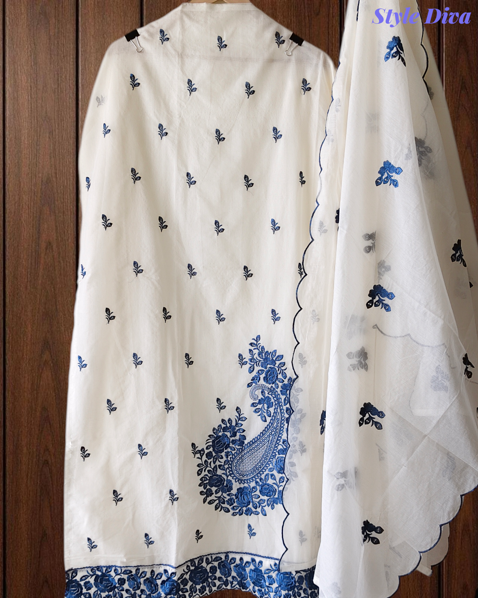 Kurta: Pure cotton kurta adorned with elegant overall thread embroidery, offering a breathable and graceful look