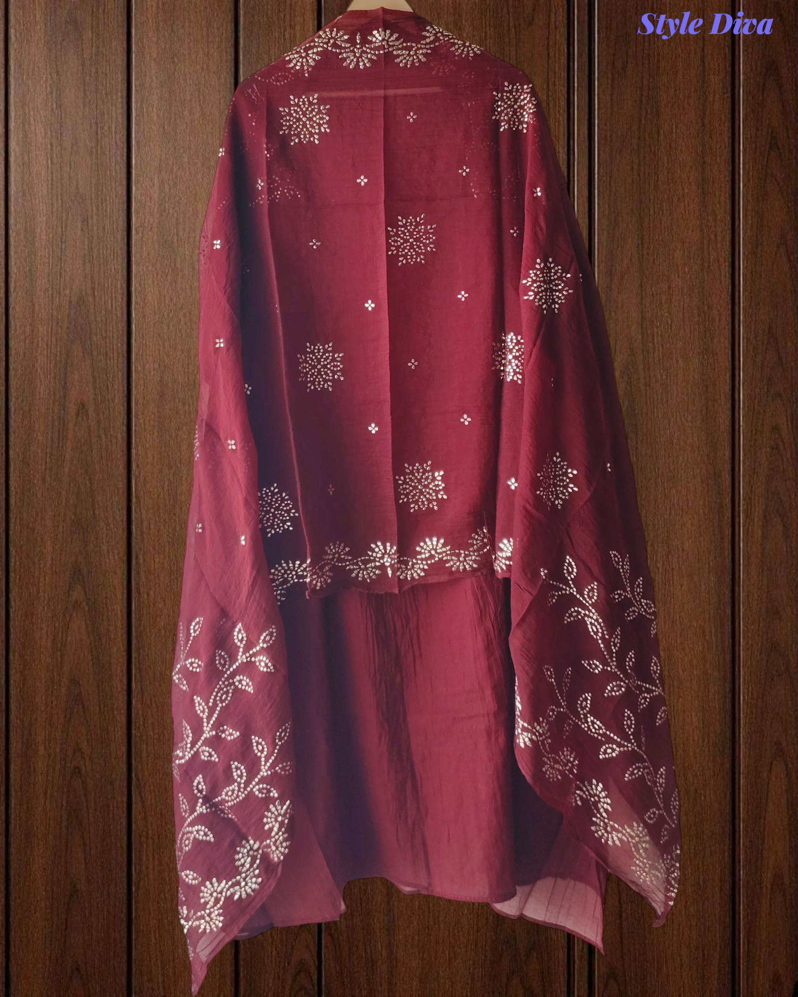 Matching Mul Chanderi Dupatta embellished with delicate Mukesh work
