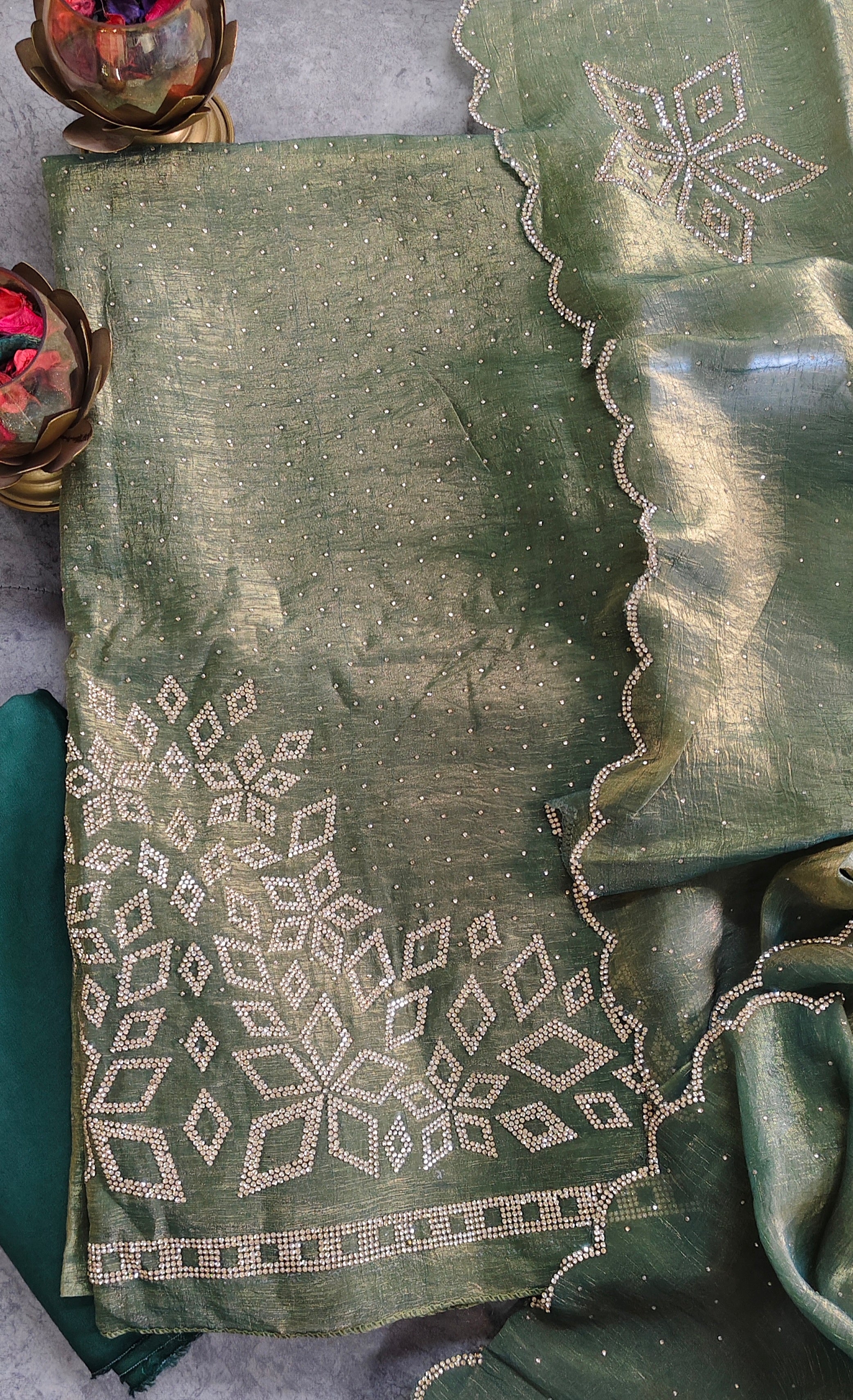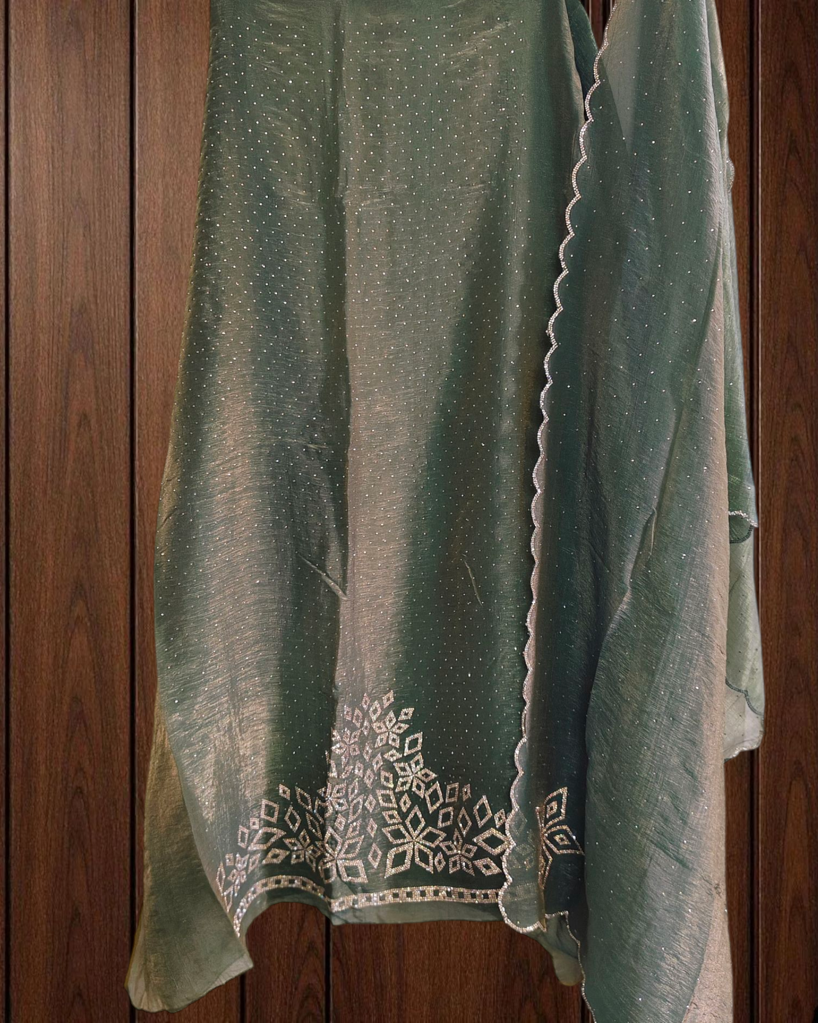 Shimmer Tissue Unstitched Suit Set with All-Over Swarovski Work.