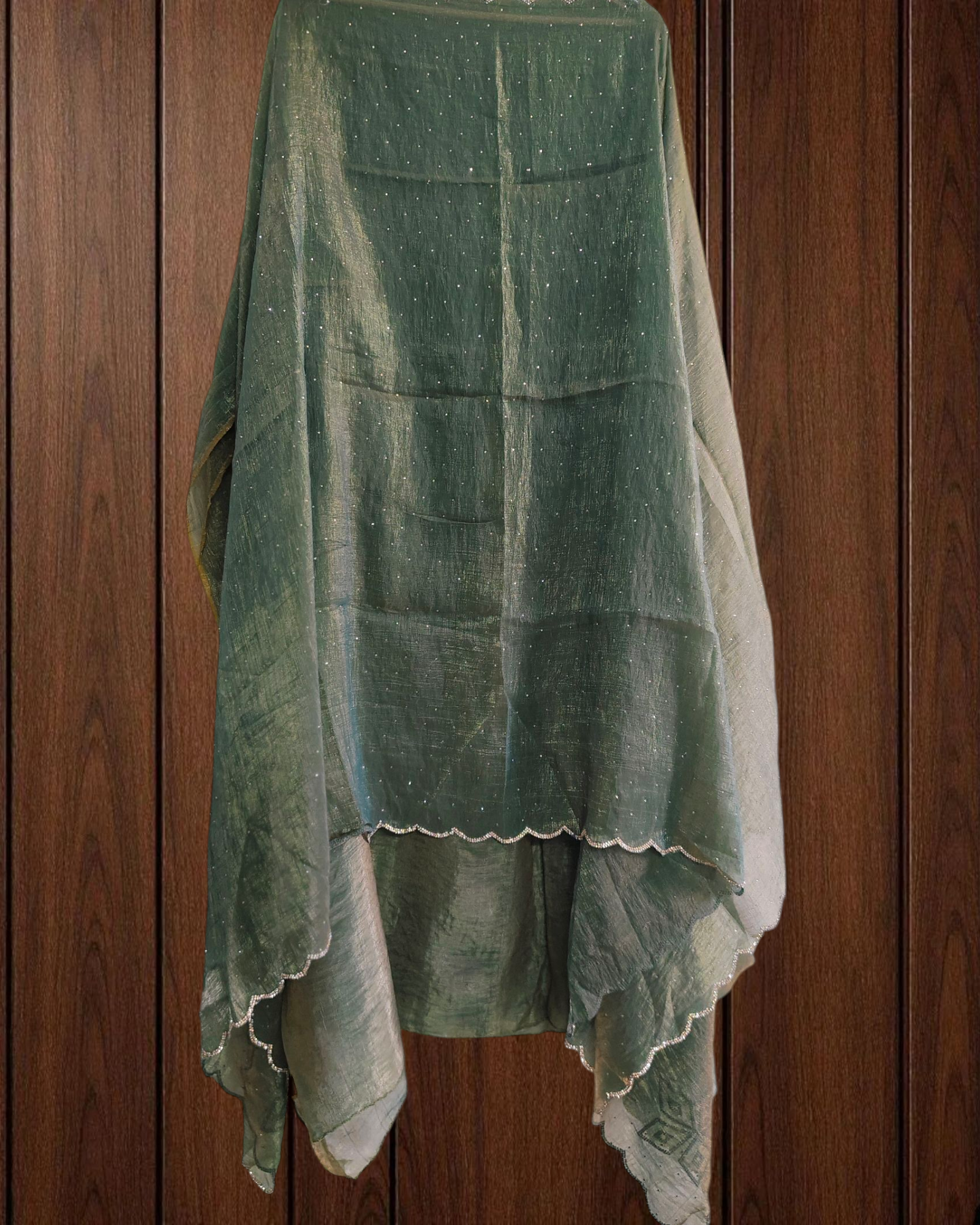 Dupatta Shimmer Tissue Dupatta Kurta With Over All Sarvoski Work