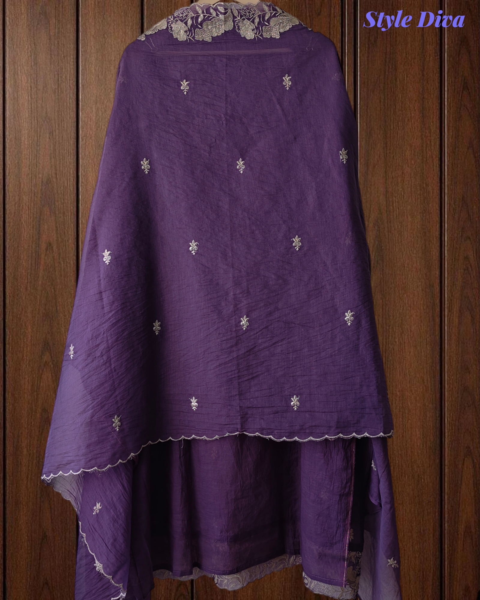 • Dupatta: Mul Chanderi Dupatta with Scalloped Embroidery Border