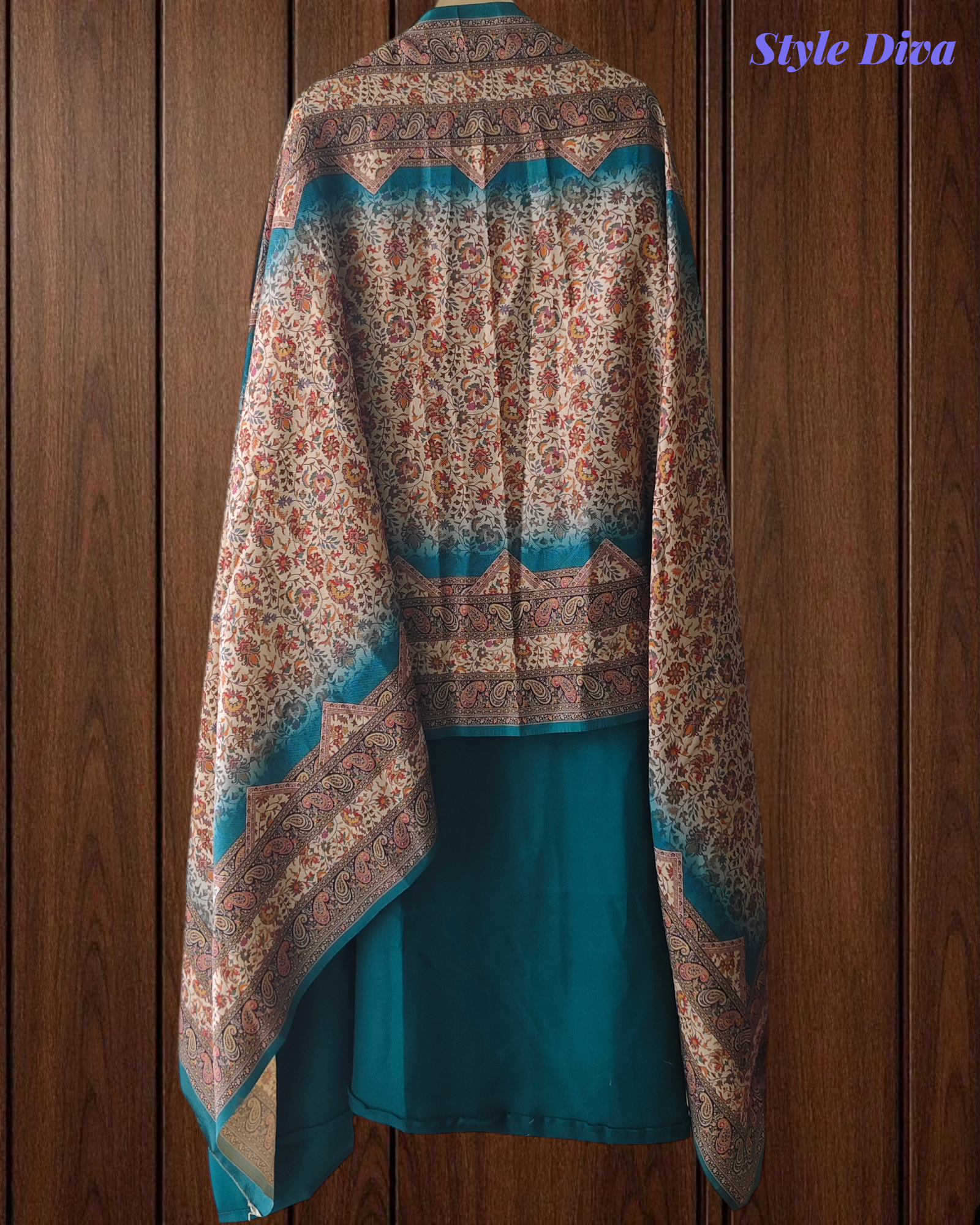 Dupatta: Soft pashmina dupatta featuring elegant digital prints that add warmth and charm