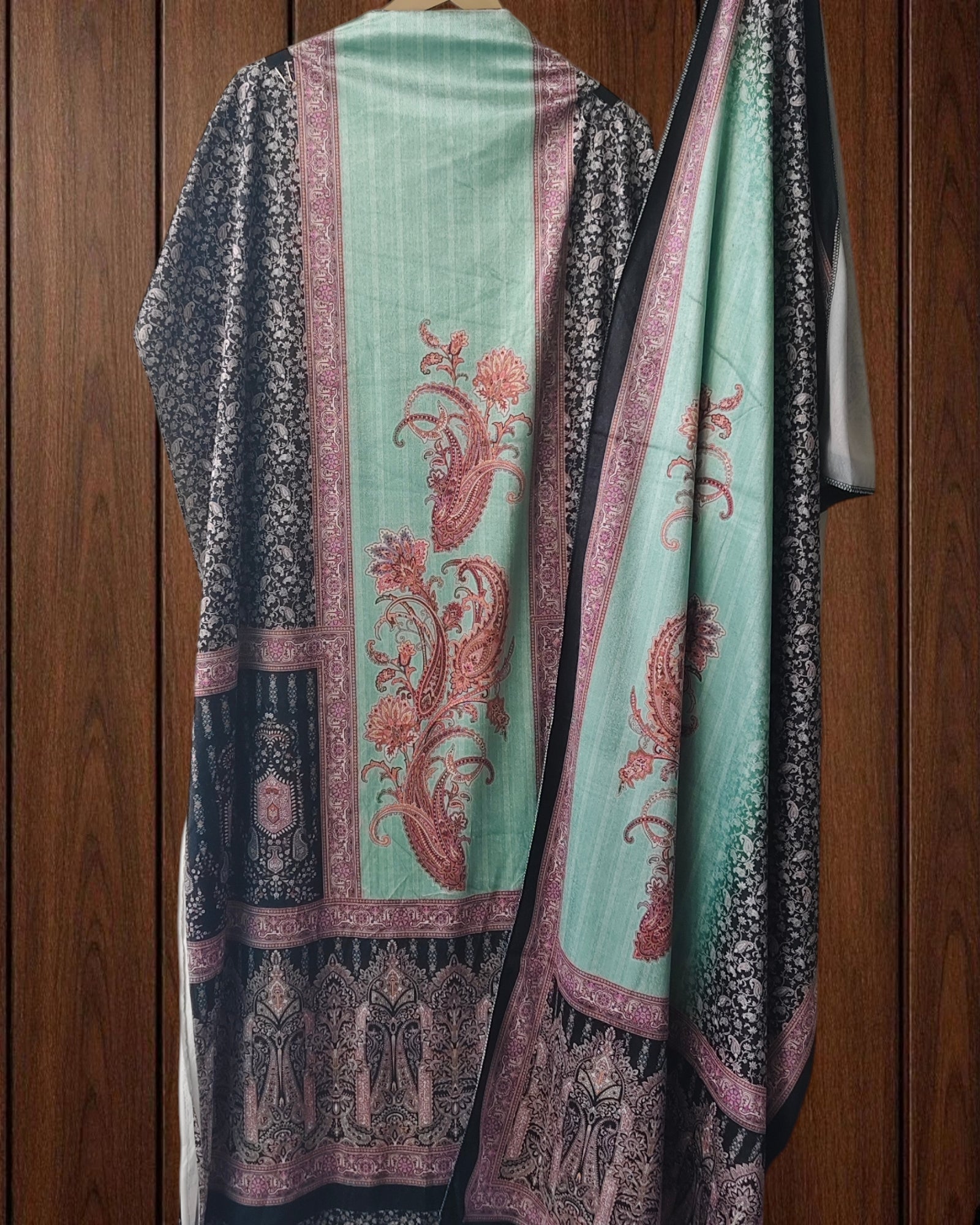 • Dupatta: Coordinated Velvet Digital Printed Dupatta