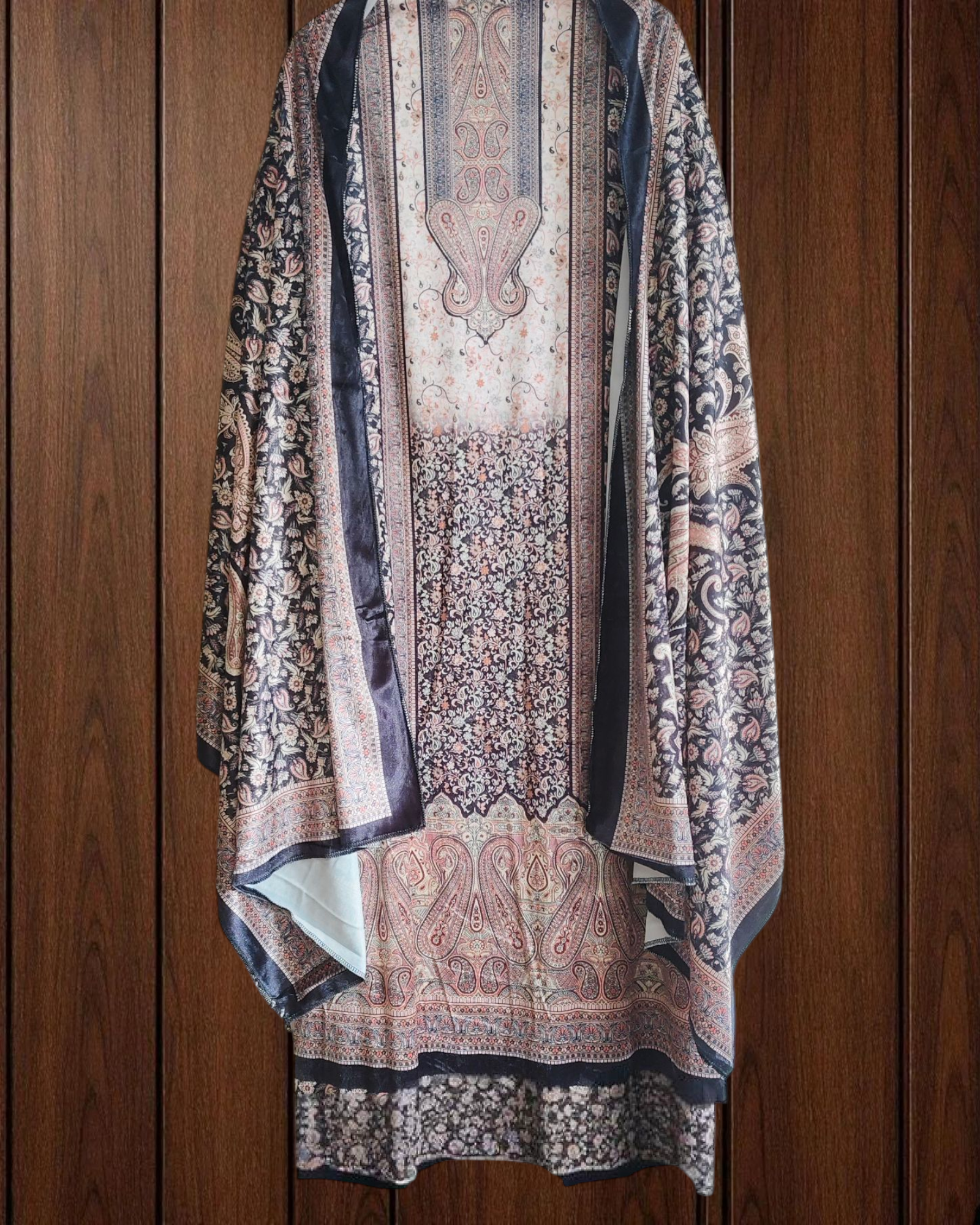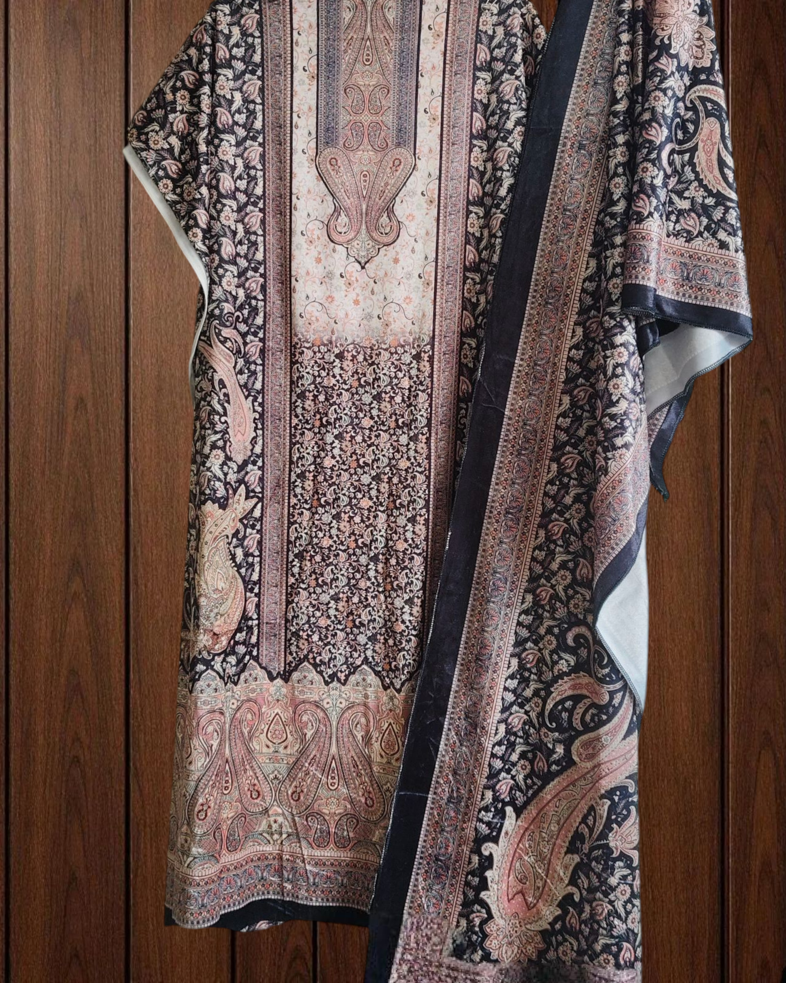 Embrace the elegance of winter with this exquisite Velvet Digital Printed Unstitched Suit, designed to exude sophistication and warmth. The plush velvet fabric flows gracefully, enhanced by vibrant digital prints that reflect timeless charm. Perfect for festive celebrations, evening gatherings, and grand occasions, this ensemble captures the essence of luxurious winter fashion. Pair it with bold accessories and classic heels to create an unforgettable style statement.