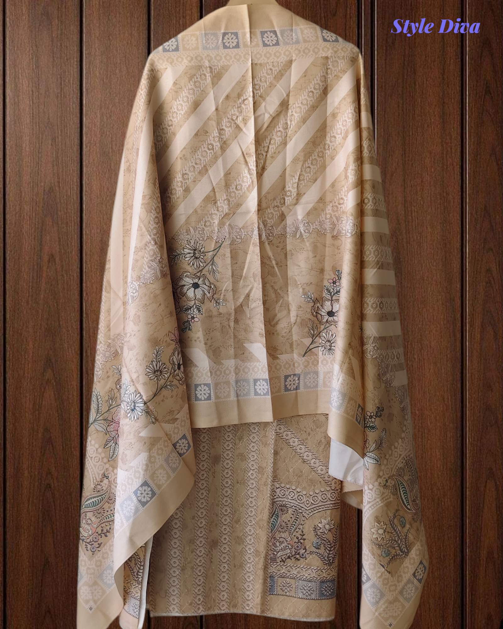 Dupatta: Coordinated pashmina dupatta featuring elegant digital prints that add warmth and charm